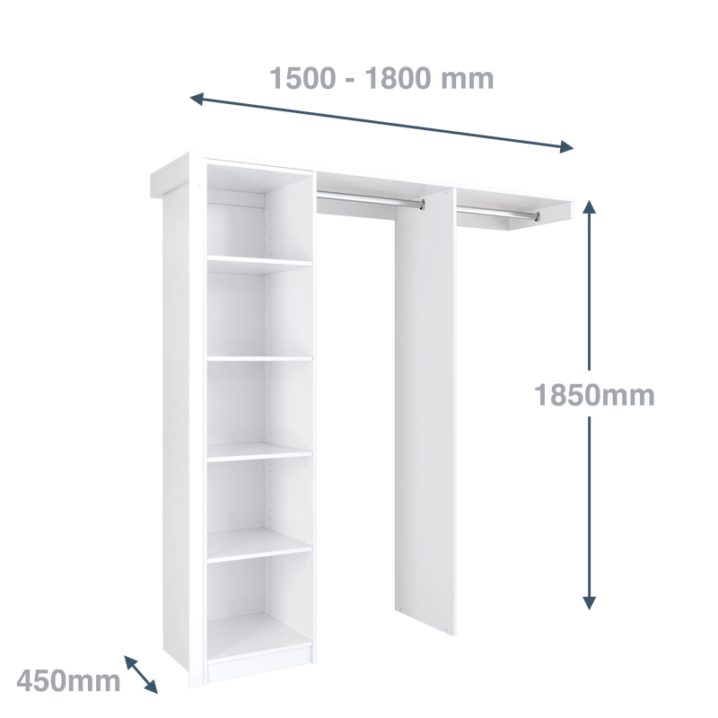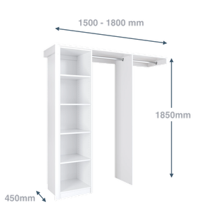 1500 - 1800mm White Package 1 Opening Built In Wardrobe Package