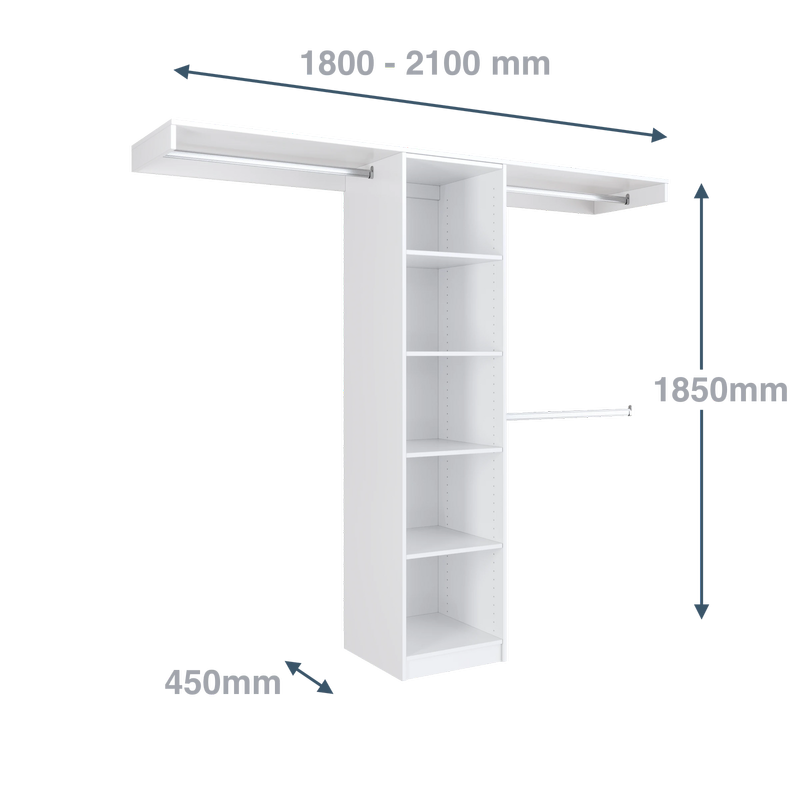 1800 - 2100mm White Package 3 Built In Wardrobe Package