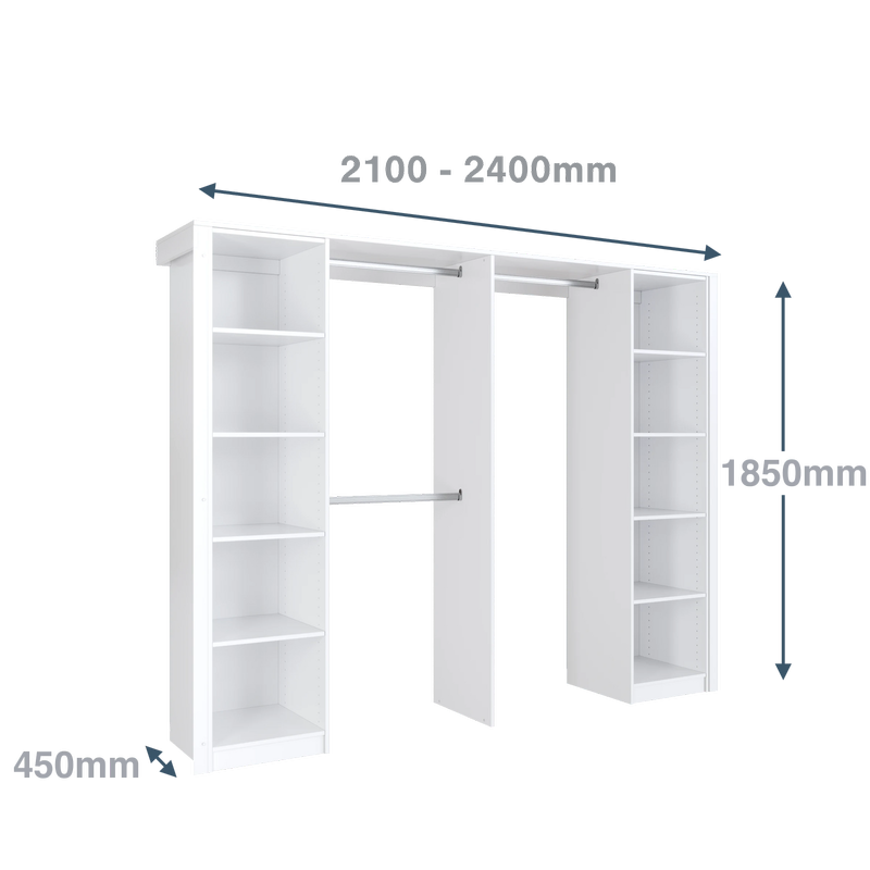 A brand new, easy-to-install, expertly designed wardrobe package. There are 6 configurations to choose from depending on the size of your wardrobe.