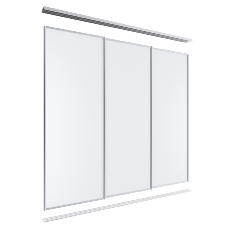 SO Lugna Sliding Door - 3 White Melamine Doors (White Triple Track) 0-2400H x 1801-2700W